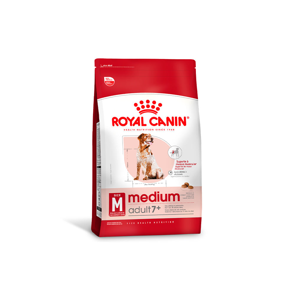 Alimento completo seco para cães maduros de porte médio (peso de 11 até 25 kg) - A partir de 7 anos de idade.